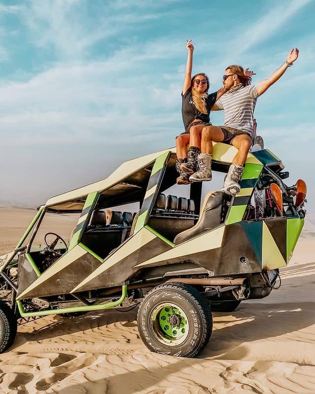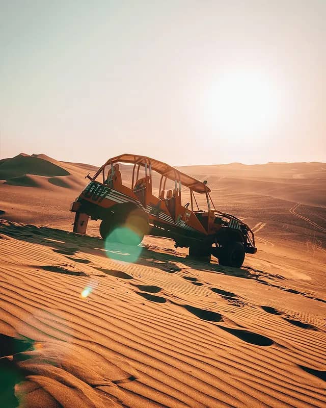 Luego continuamos hacia el Oasis de la Huacachina, donde nos esperan los carros areneros o buggys que nos harán recorrer de arriba abajo las interminables dunas de Ica. También nos deslizaremos con las tablas de sandboard desde lo más alto. Después de esta adrenalínica experiencia tendrás el tiempo suficiente para pasear por el oasis, fotografiarte y hacer las últimas compras.